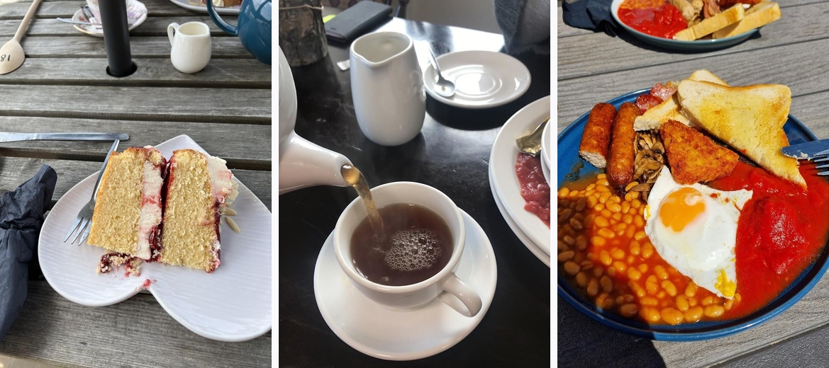 Expect a delightful selection of teas and various dishes, including traditional full English breakfasts, sandwiches, toasties, and refreshing summer salads.